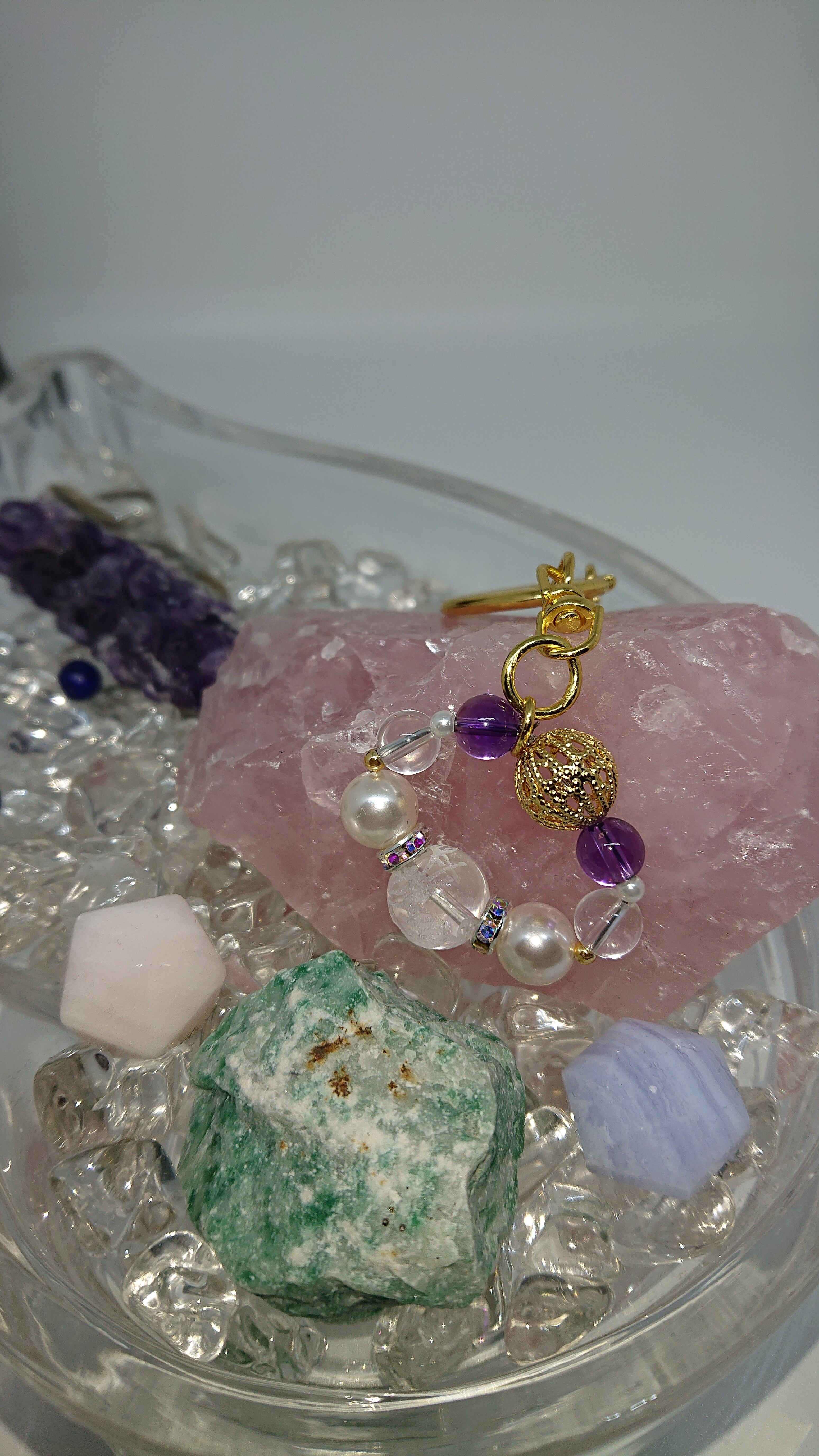 龍の水晶キーホルダー パープル ドラゴン付き [龍、宇宙のエネルギー入り]