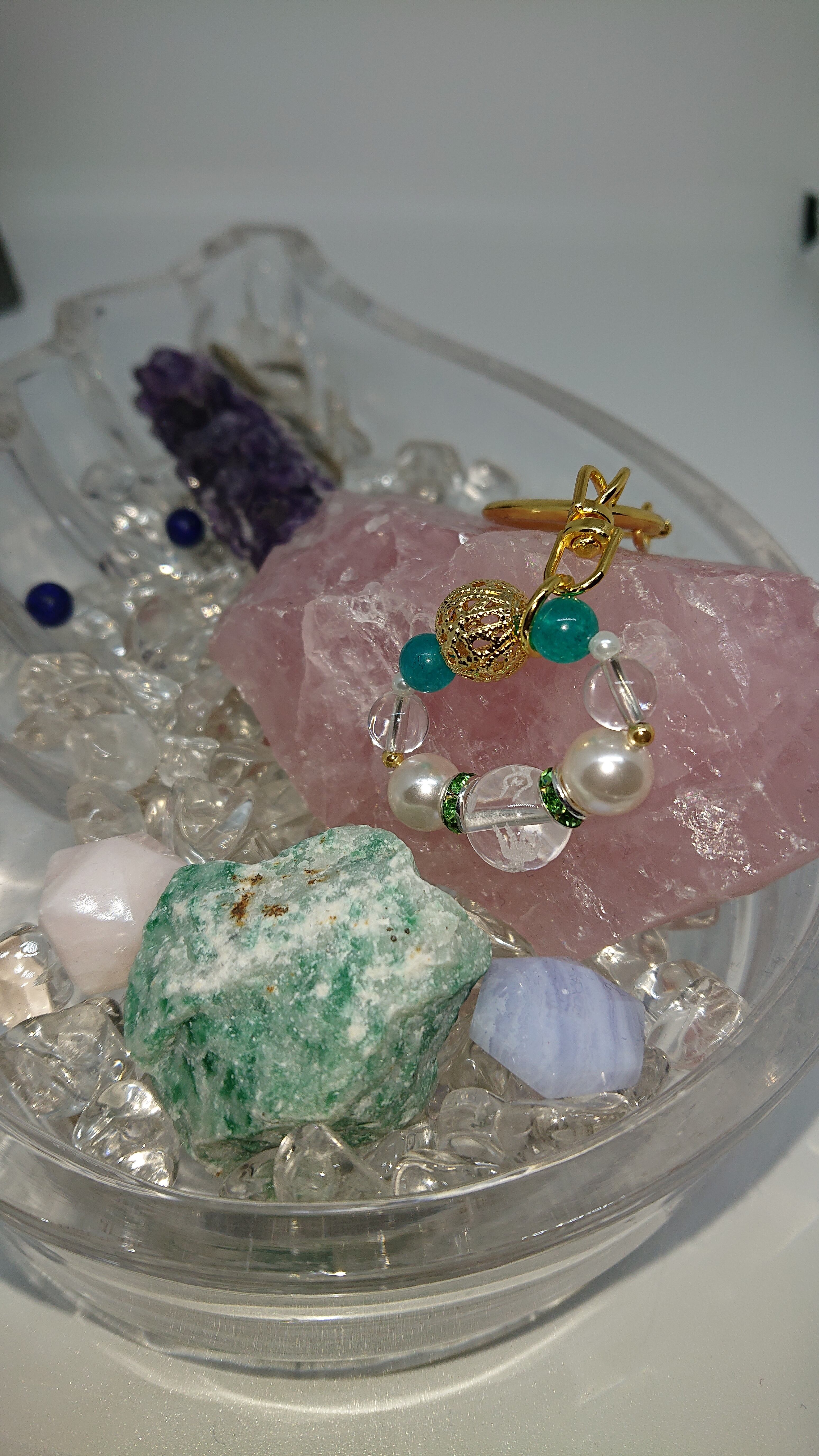 龍の水晶キーホルダー グリーン ドラゴン付き [龍、宇宙のエネルギー入り]